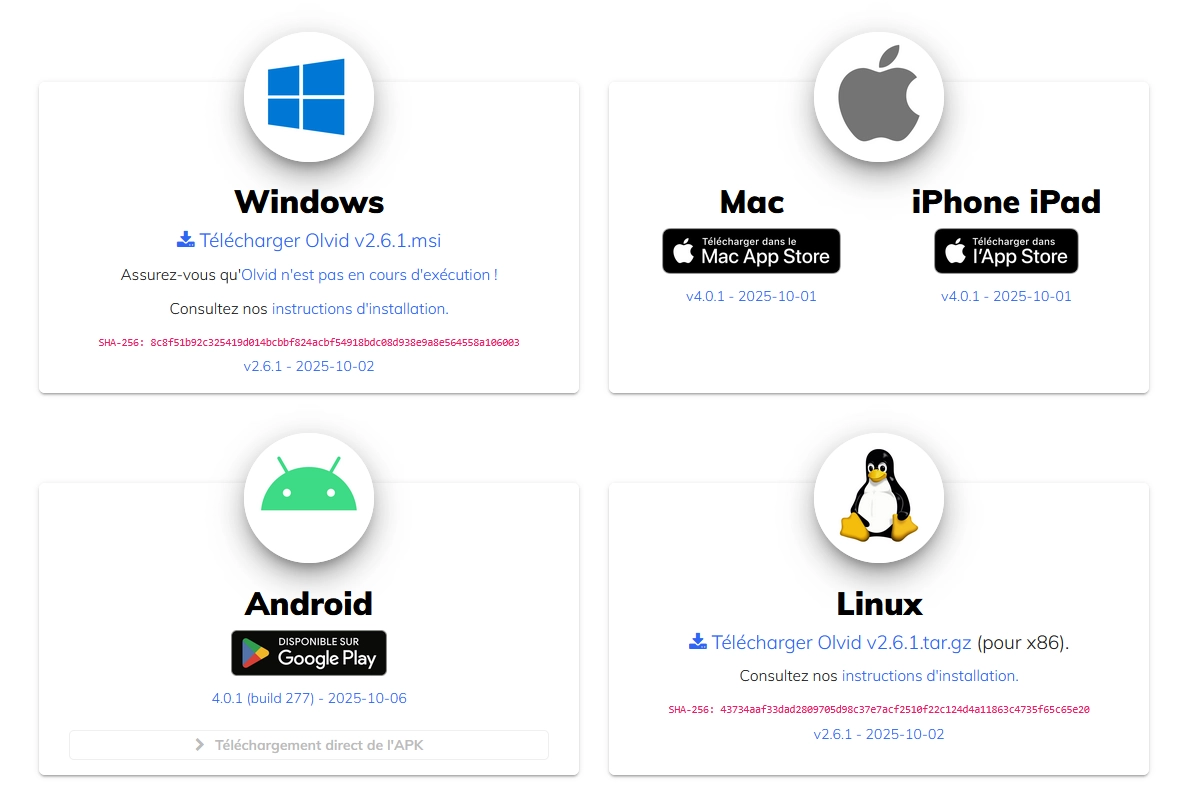 Olvid est disponible sur plusieurs plateformes. Voici comment le télécharger selon votre appareil :